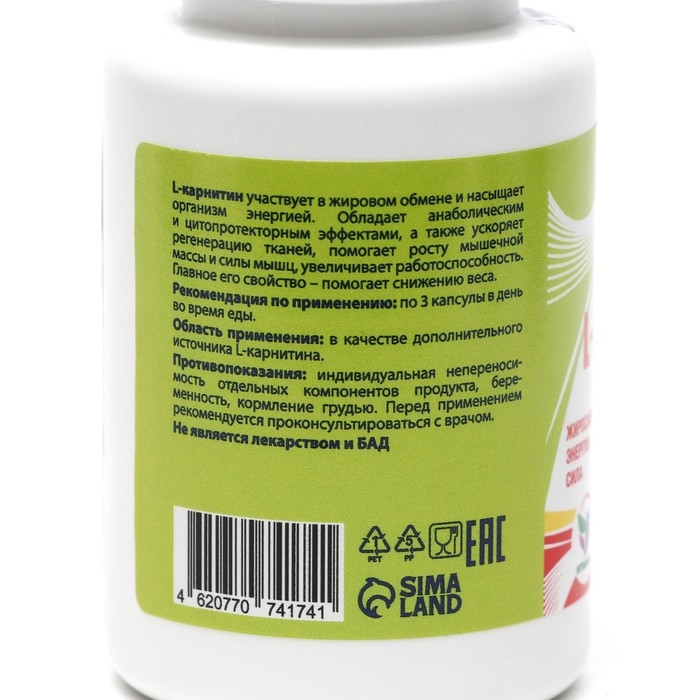 L Карнитин 400 мг, спортивное питание, витамины аминокислоты для коррекции веса, жиросжигатель для похудения / Л карнитин 60 капсул