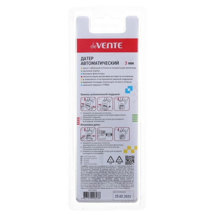 Датер автоматический deVENTE 7810, 3 мм, буквенное отображение месяца, в блистере.