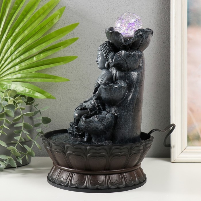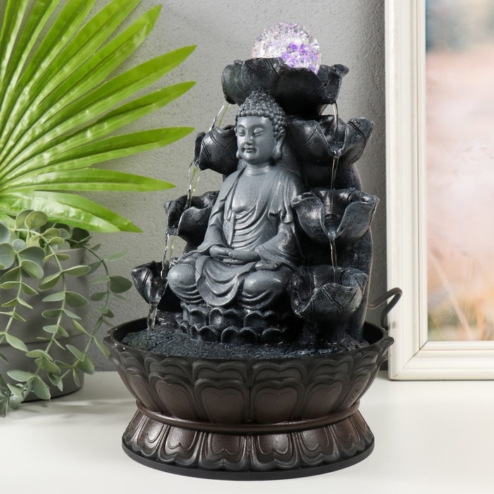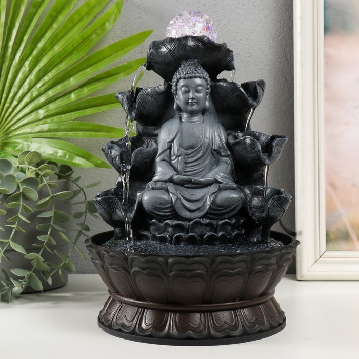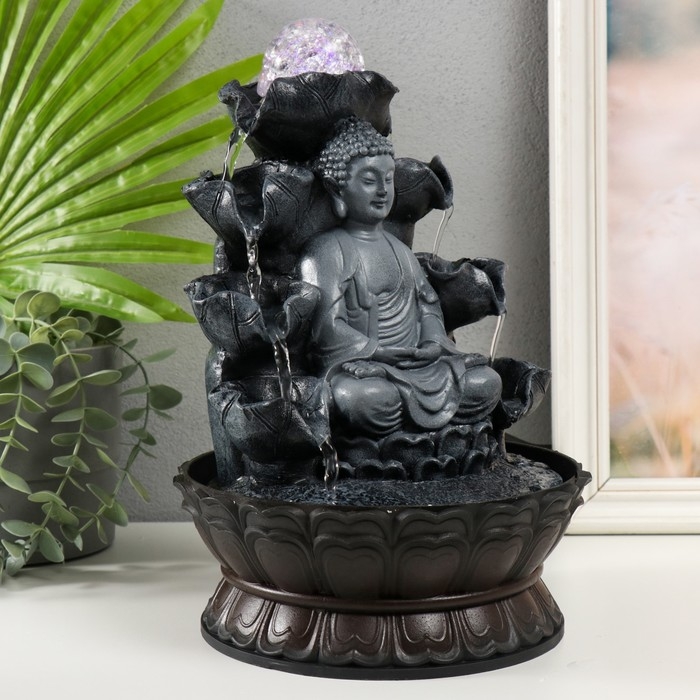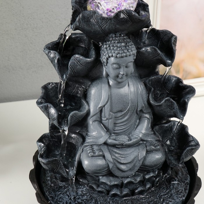Фонтан настольный от сети, подсветка "Будда в сером под водопадами" 20.5х20.5х30 см