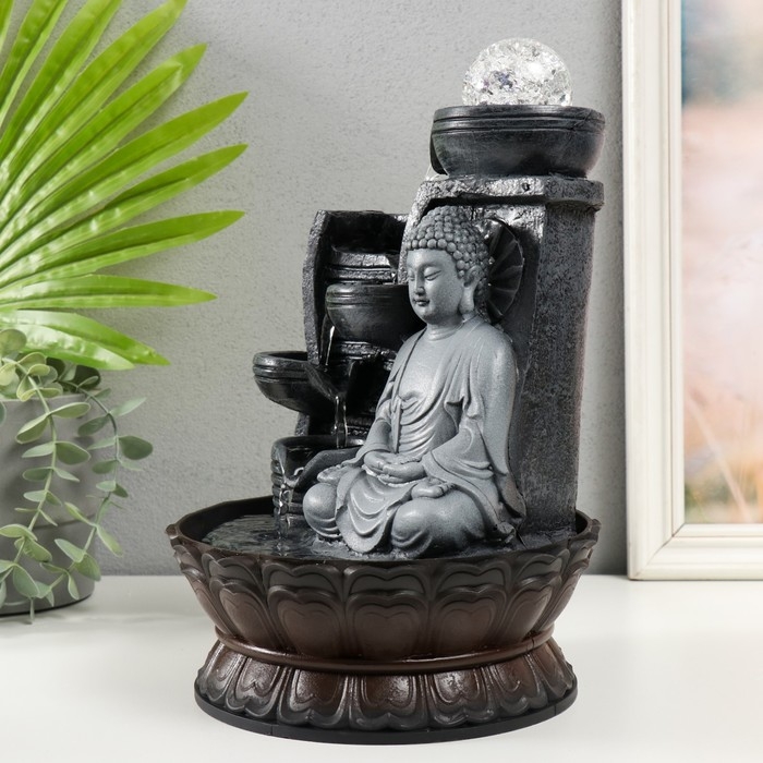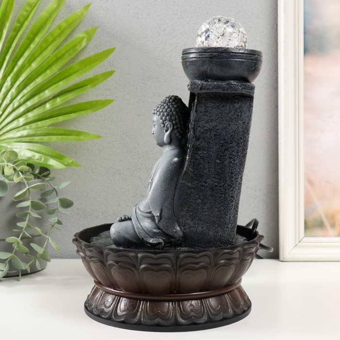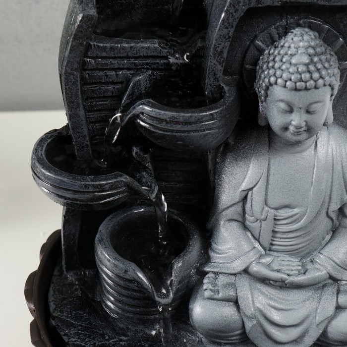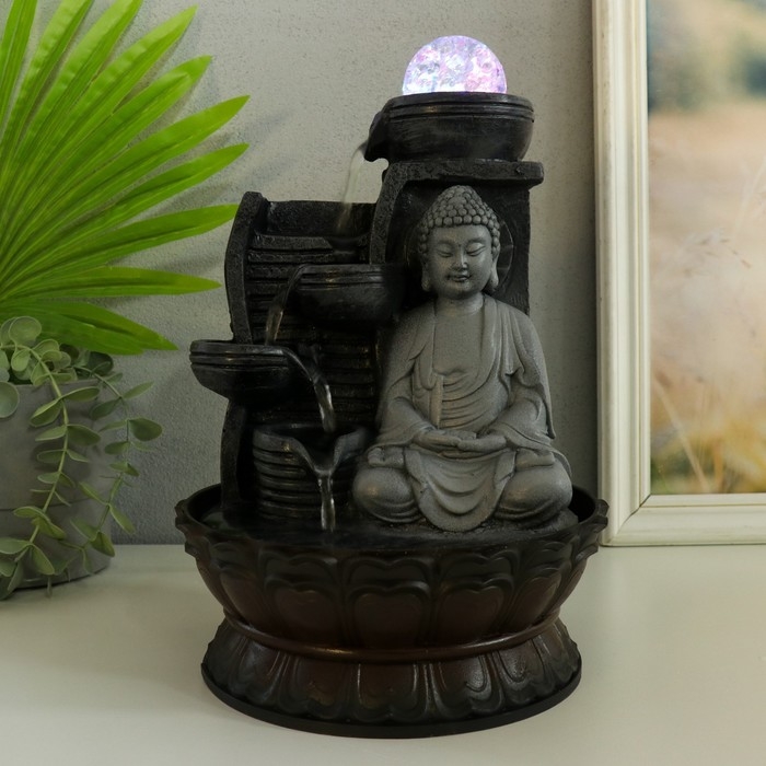 Фонтан настольный от сети, подсветка "Будда в сером у стены" 20х20х30 см