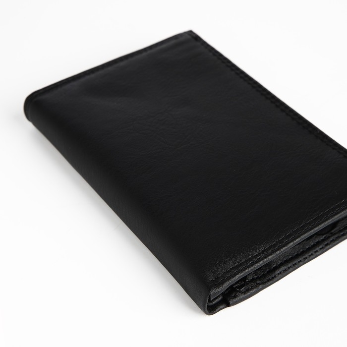 Портмоне мужское без застёжки, 3 в 1, отдел автодокументов, паспорта, карт, купюр, цвет чёрный