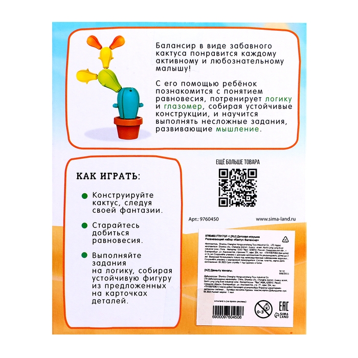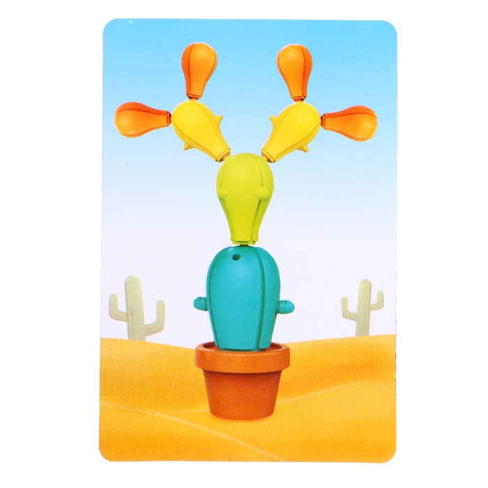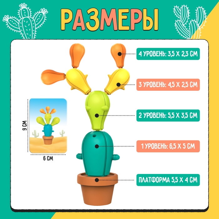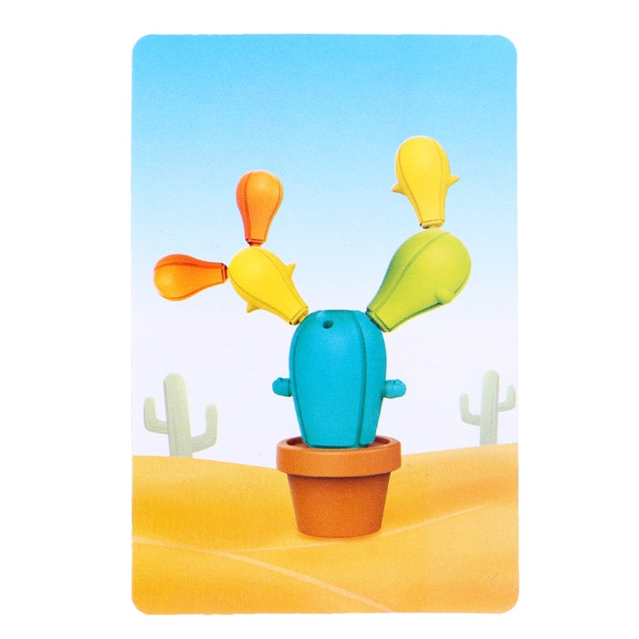 С помощью кактуса ребёнок познакомится с понятием равновесия, потренирует логику и глазомер, собирая устойчивые конструкции, и научится выполнять несложные задания, развивающие мышление.