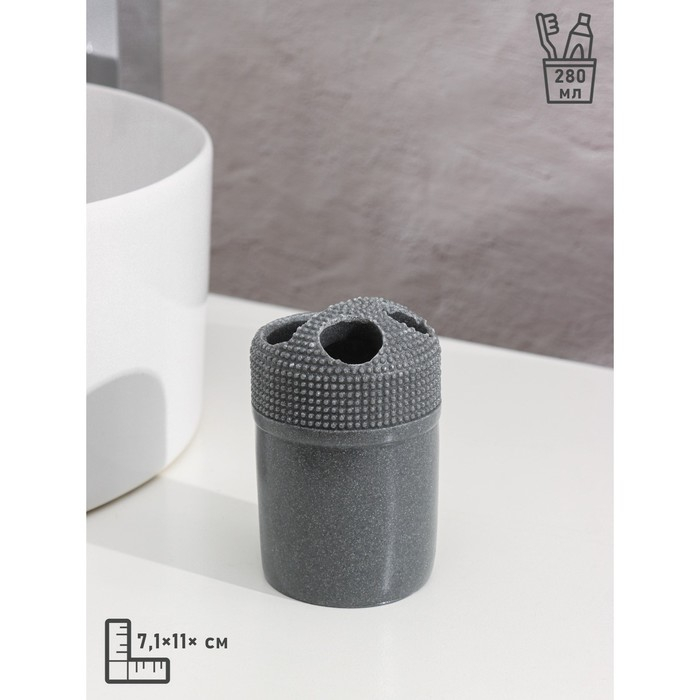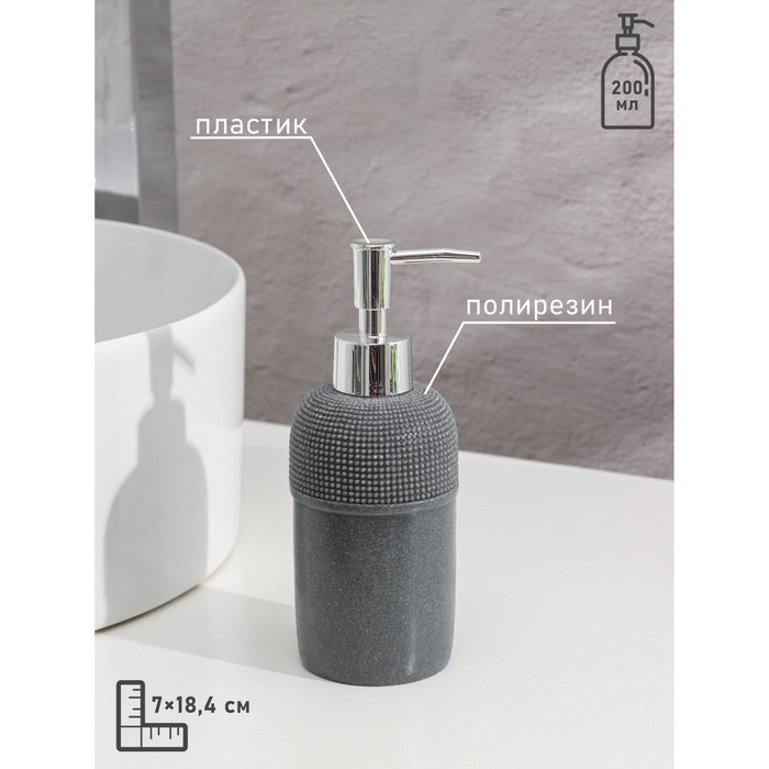 Набор аксессуаров для ванной комнаты «Лоск», 4 предмета (дозатор 200 мл, мыльница, 2 стакана), цвет серый