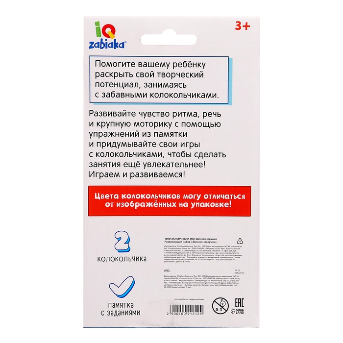 Развивающий набор «Звонкие зверушки», 3+