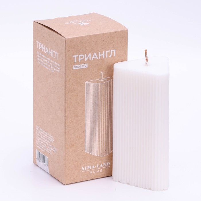 Свеча декоративная "Треугольник с гранями",6х12 см, пальмовый воск, белая, 12 ч Sima Home