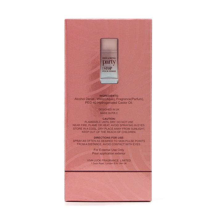 Dreaming Party – это композиция из нот розового шампанского в окружении оттенков цветов персикового дерева и древесных аккордов.