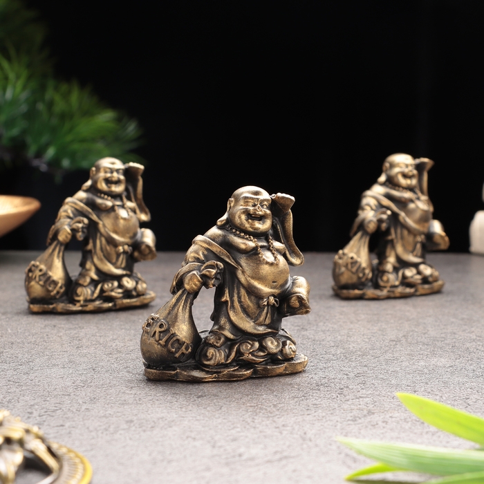 Сувенир «Хотей на богатство", гипсобетон, 6х5х5 см, набор 3 шт, 6х4х6,5 см