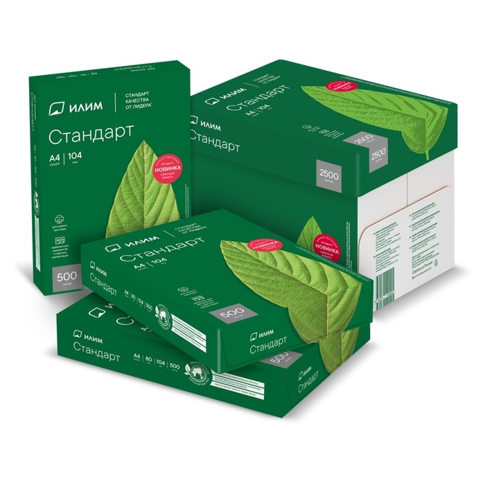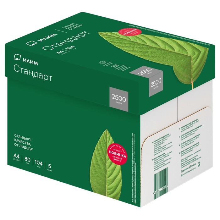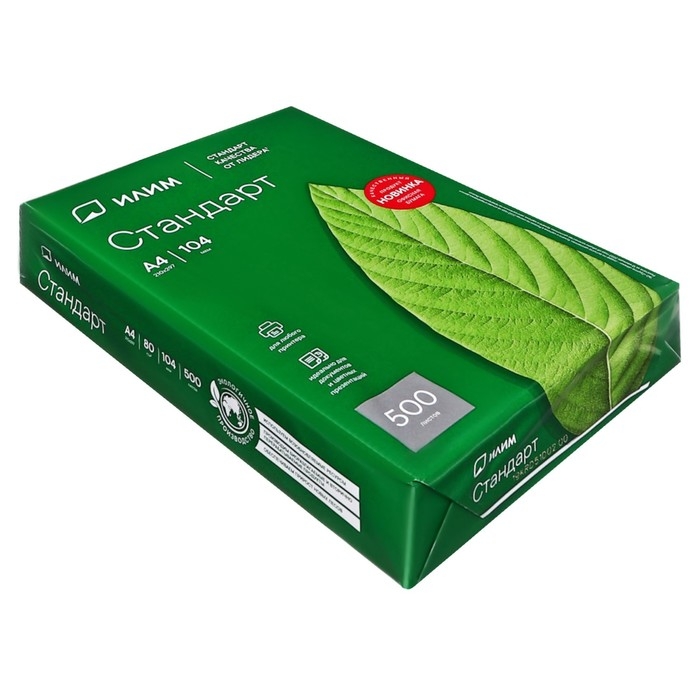 Бумага А4 500л, Илим "Стандарт", 80 г/м2, белизна 146% CIE, класс C (цена за 500 листов)