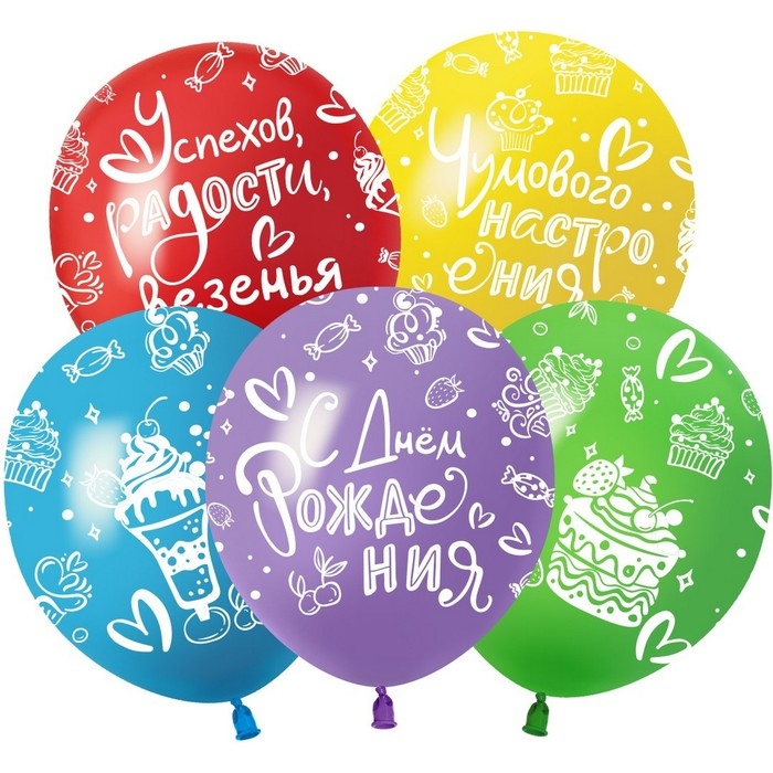 Шар латексный 12" «С Днём Рождения. Яркий праздник» пастель, 5 ст., набор 25 шт., МИКС