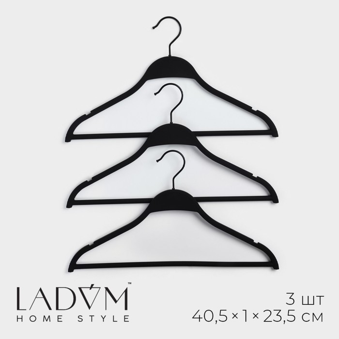 Плечики - вешалки для одежды LaDо́m Soft-touch, 40,5×23,5×1 см, 3 шт, с перекладиной