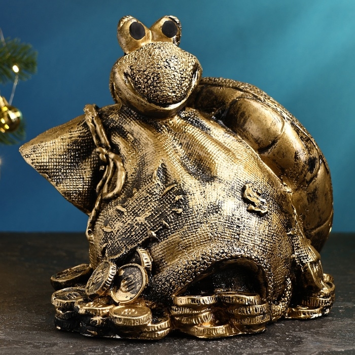 Копилка "Змея с мешком " черное золото, 25х27х23см