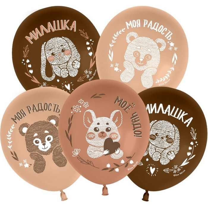 Шар латексный 12" «Нежные зверята», пастель, 2 ст., набор 25 шт., МИКС