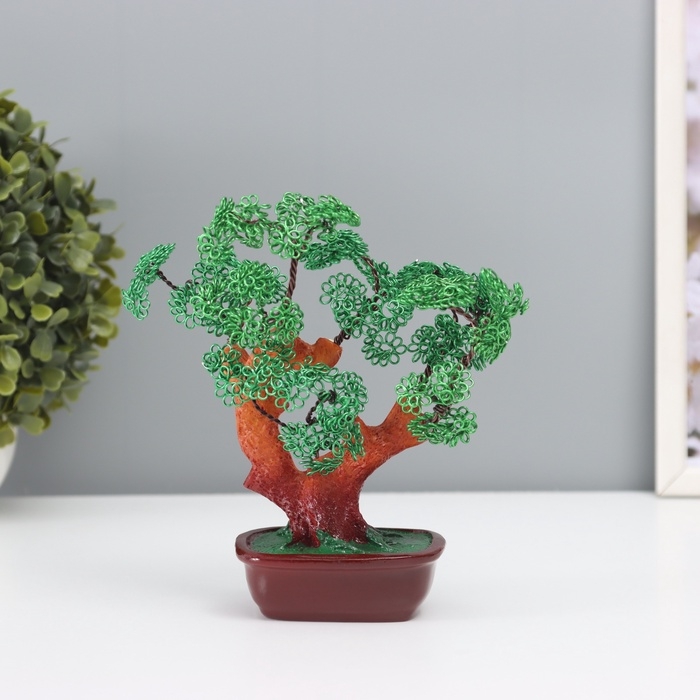 Сувенир бонсай полистоун, металл "Дерево счастливой жизни" зелёное 8х17х16 см
