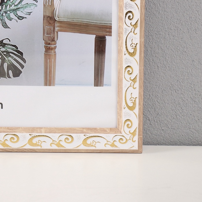 Фоторамка пластик 30х40 см "Золотой вьюнок на белом" 1,1х32,8х42,8 см