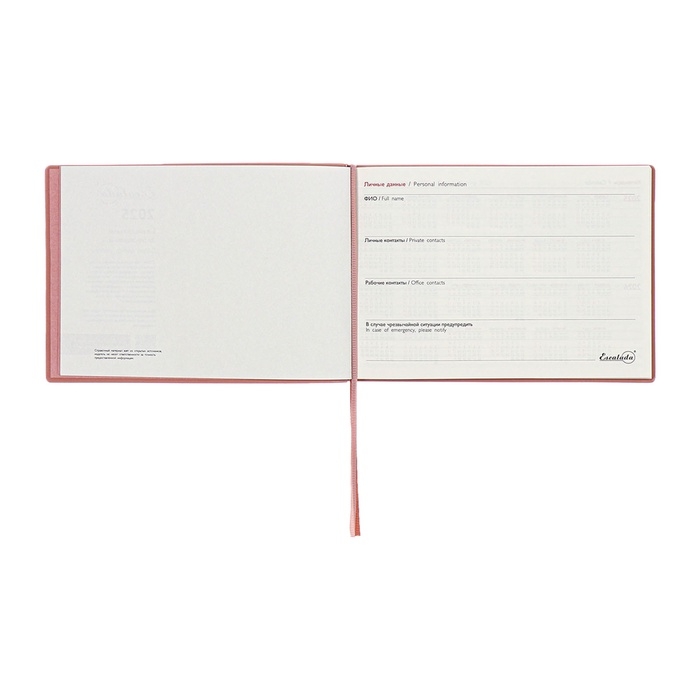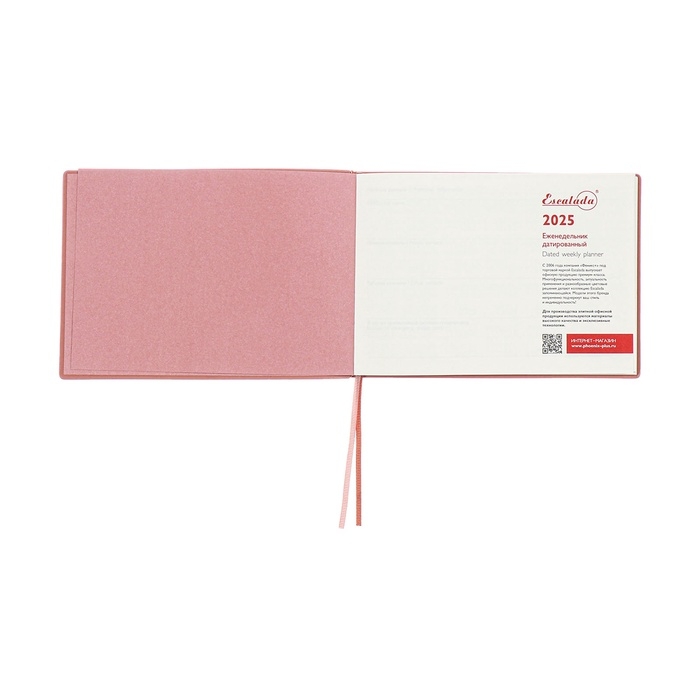 Еженедельник датированный 2025 года, 181х127 мм, 64 листа ESCALADA, мягкая обложка из искусственной кожи, блинтовое тиснение, кремовый блок 70 г/м², розовый