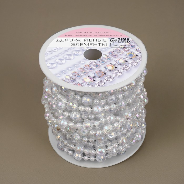 Бусы на нитях, с голографией, 8 мм, 9 ± 1 м, цвет прозрачный