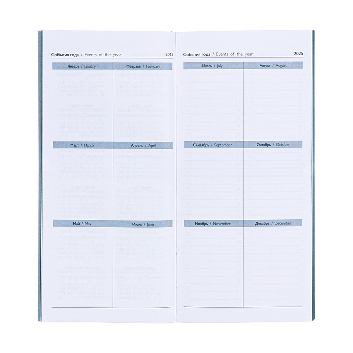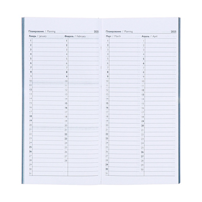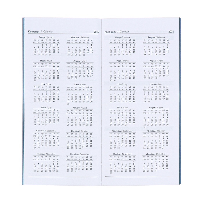 Еженедельник датированный 2025 года, 80х165 мм, 64 листа ESCALADA, мягкая обложка из искусственной кожи, блинтовое тиснение, блок 70 г/м², голубой