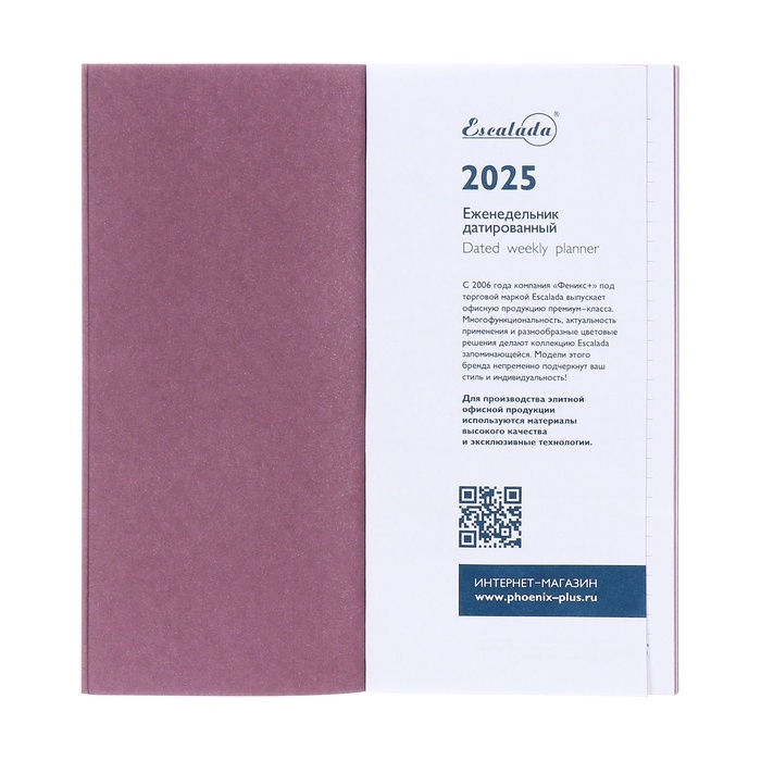 Еженедельник датированный 2025 года, 80х165 мм, 64 листа ESCALADA, мягкая обложка из искусственной кожи, блинтовое тиснение, блок 70 г/м², сиреневый