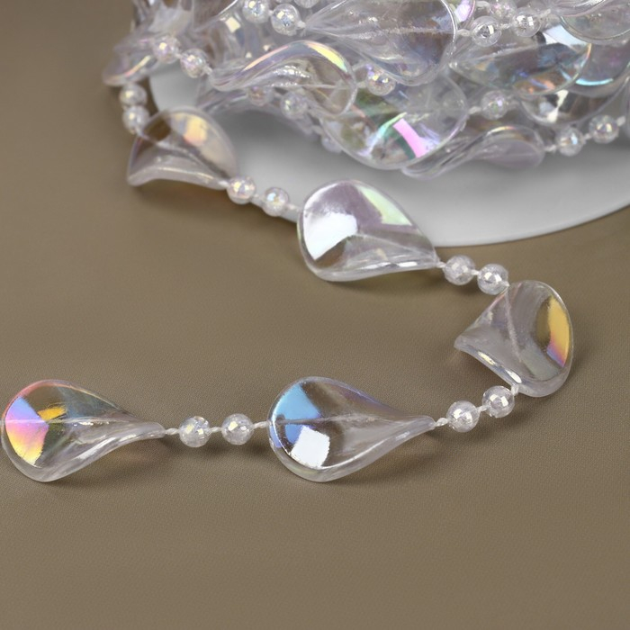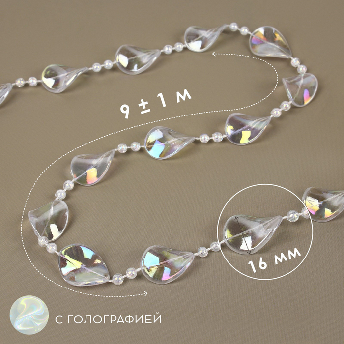 Бусы на нитях, с голографией, 16 мм, 9 ± 1 м, цвет прозрачный