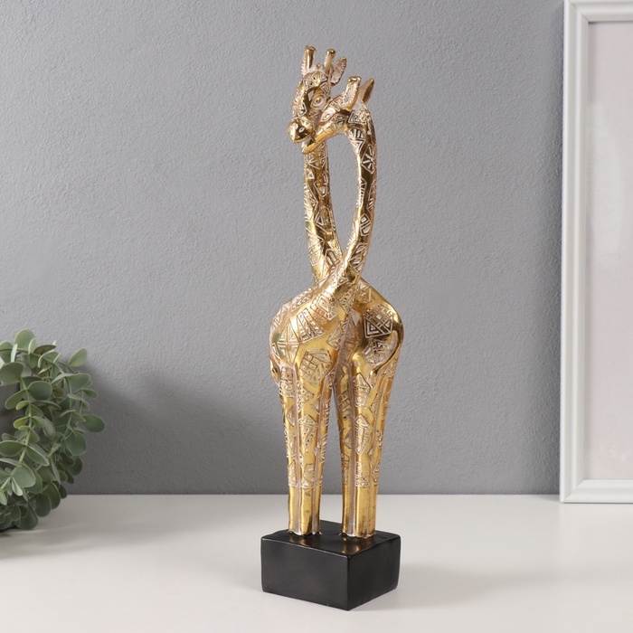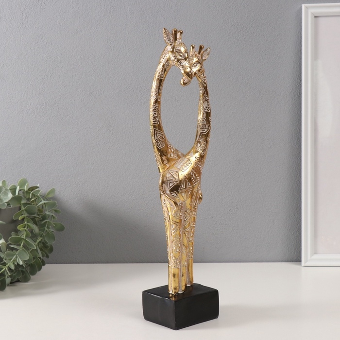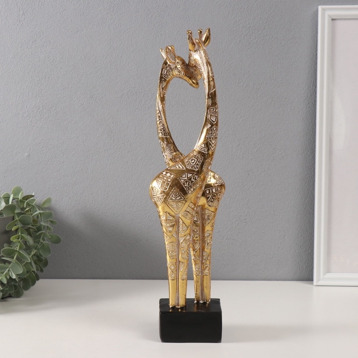 Сувенир полистоун "Жирафы - нежность" геометрические узоры золото 10х7х39,5 см