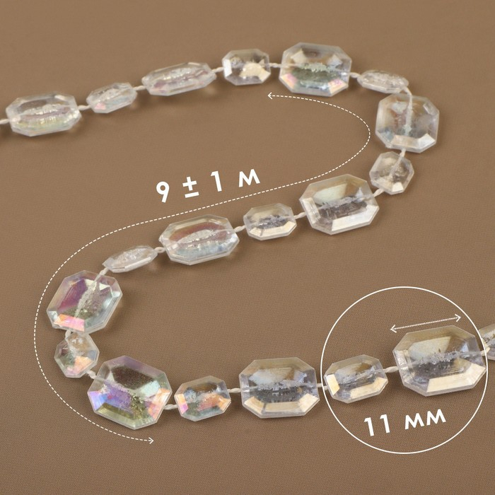Бусы на нитях, с голографией, 11 мм, 9 ± 1 м, цвет прозрачный