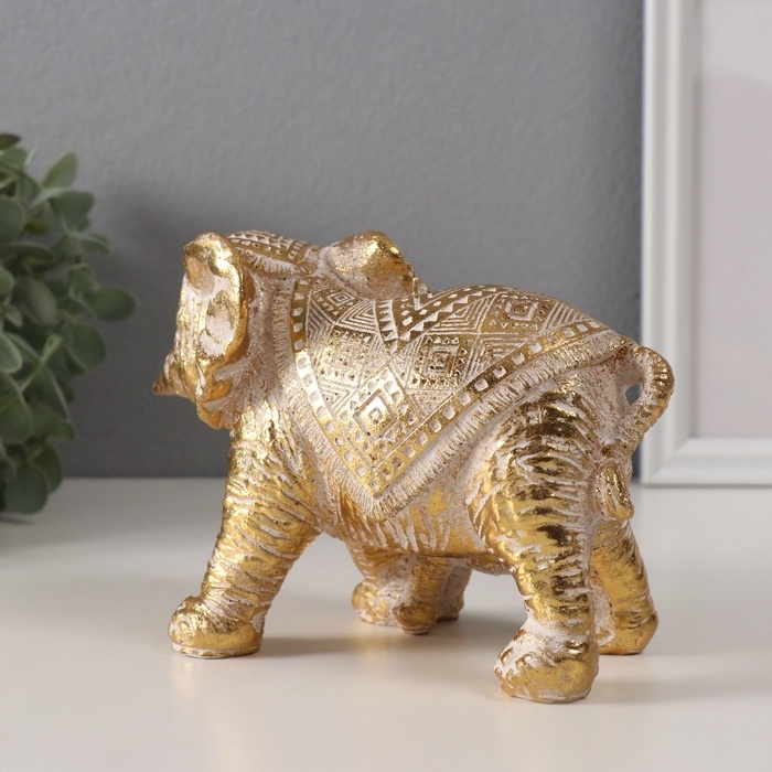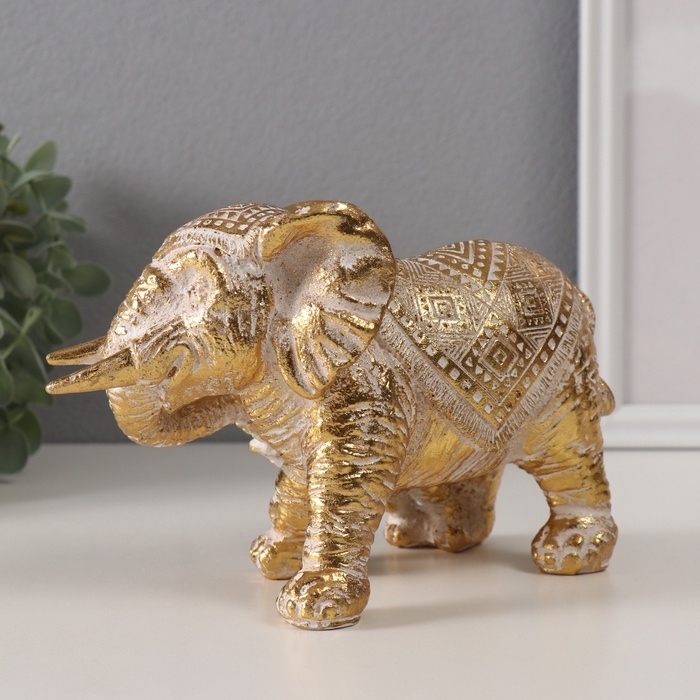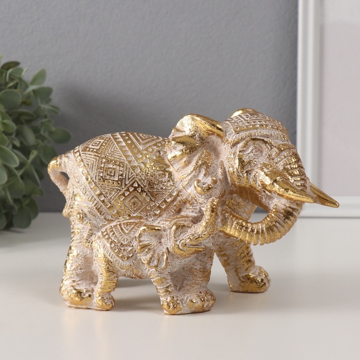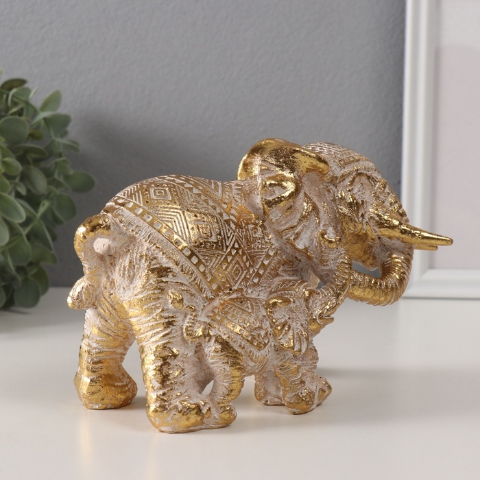 Сувенир полистоун "Слон с малышом" геометрические узоры золото 19,5х9х12 см