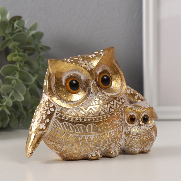 Сувенир полистоун "Золотой филин с птенцом" геометрические узоры 15,2х6х11 см