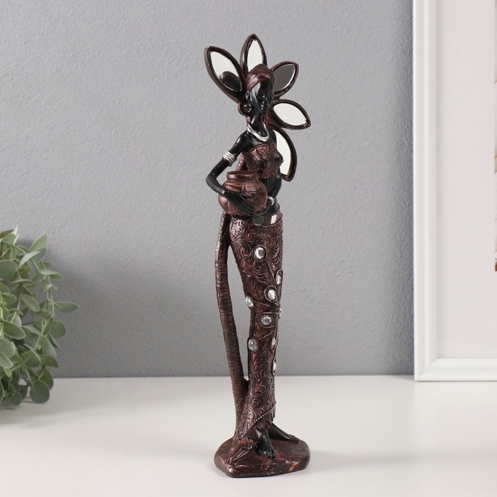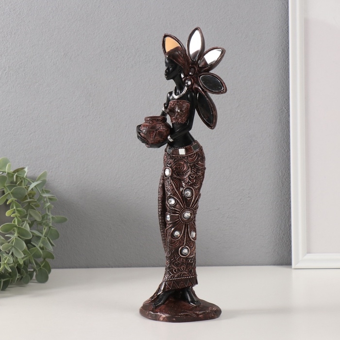 Сувенир полистоун "Африканка с кувшином у дерева с зеркальными листьями" 11,5х8х34 см