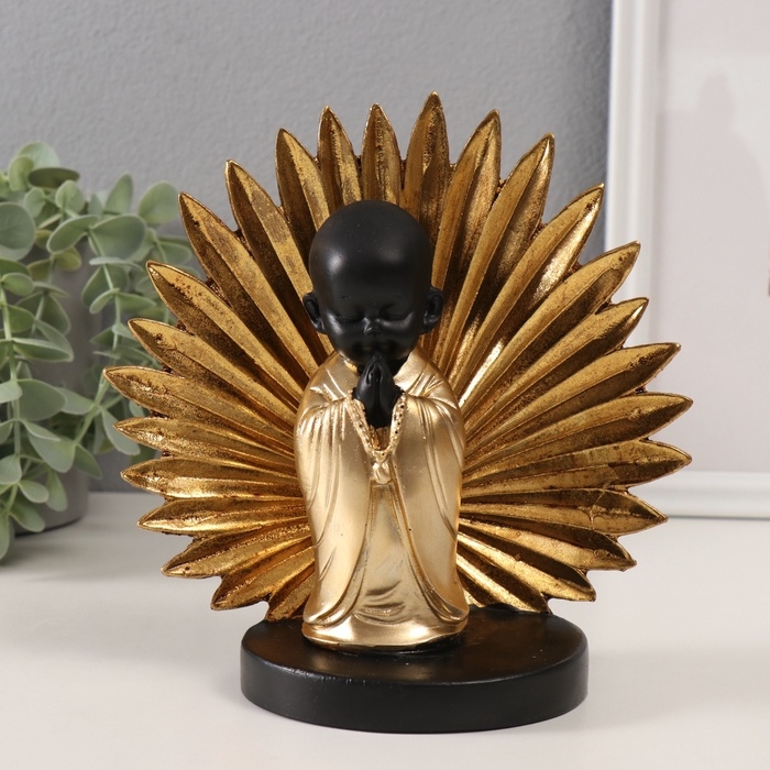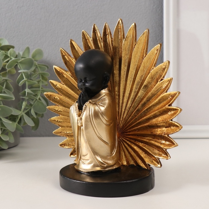 Сувенир полистоун "Маленький хотей - молитва. Пальмовый лист" золото и чёрный 18х9х18 см