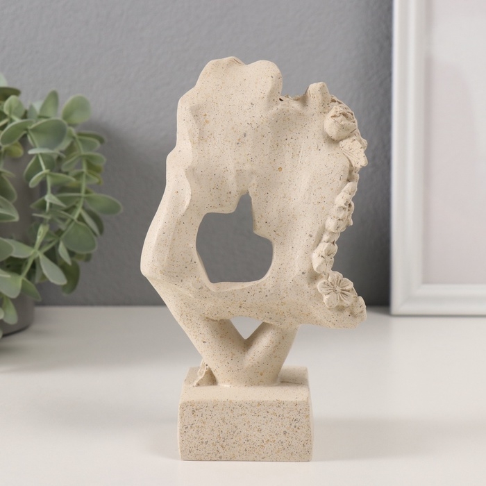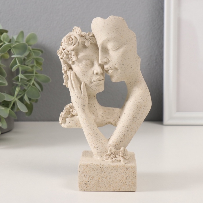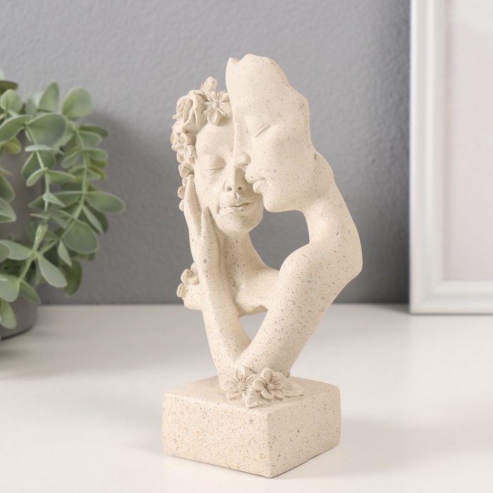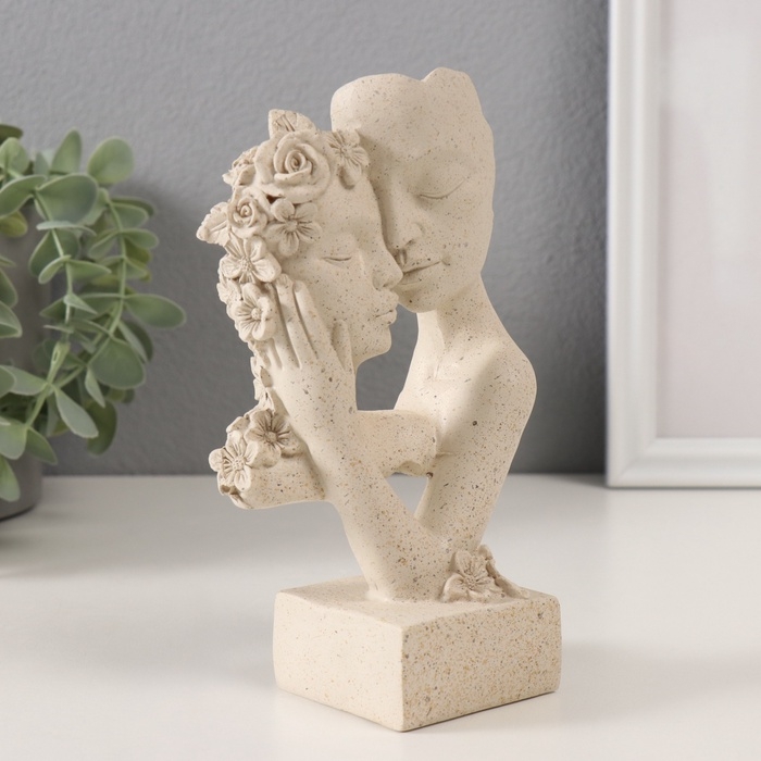 Сувенир полистоун бюст "Влюблённые с цветами" белый в крапинку 9,5х6х17 см