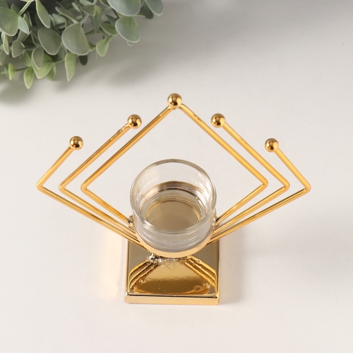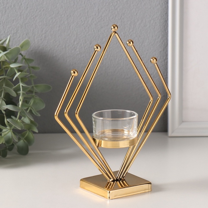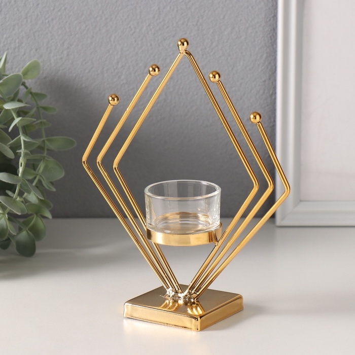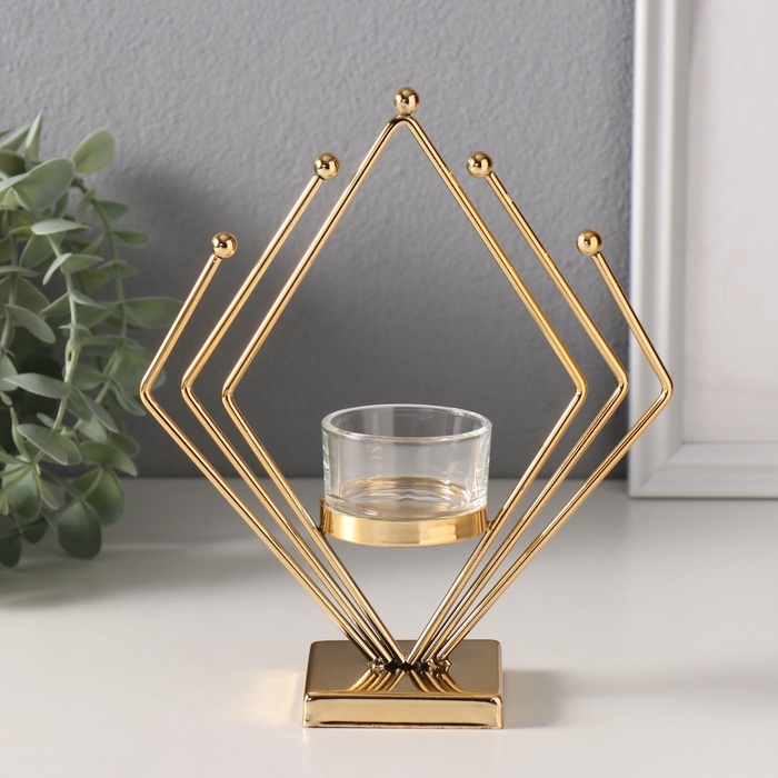 Подсвечник металл, стекло на 1 свечу "Золотой ромб" d=4,5 см 6х16х19 см