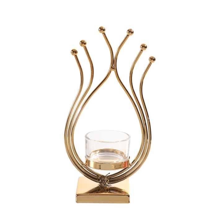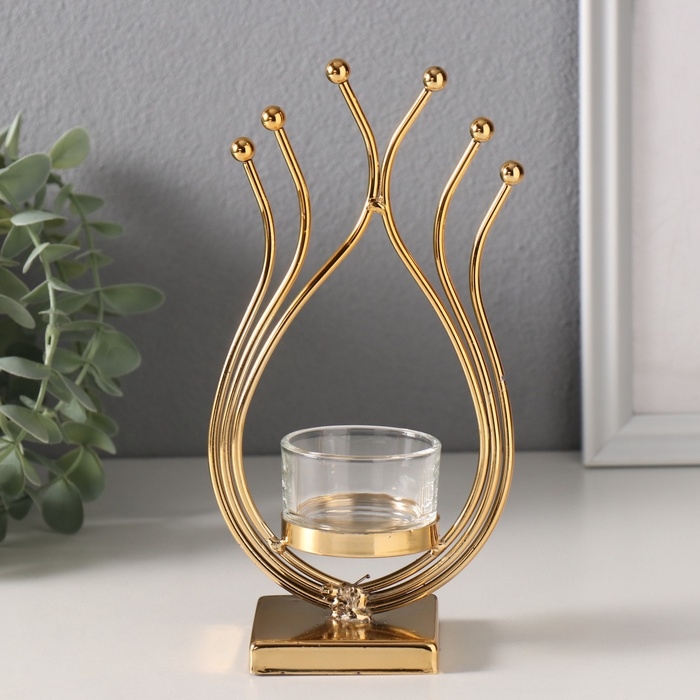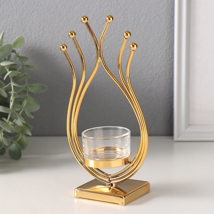 Подсвечник металл, стекло на 1 свечу "Золотое пламя" d=4,5 см 6,5х10х20 см