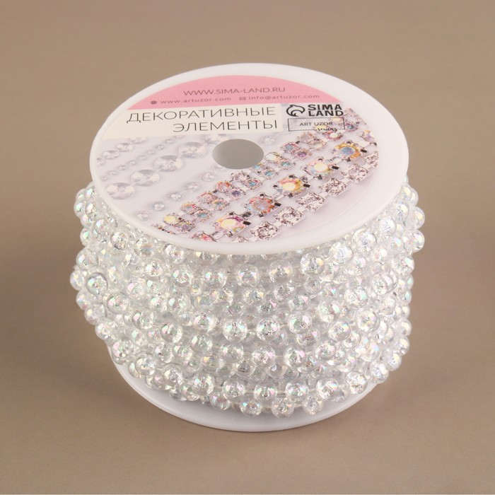 Бусы на нитях, с голографией, круглые, 6 мм, 9 ± 1 м, цвет прозрачный