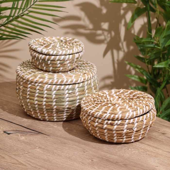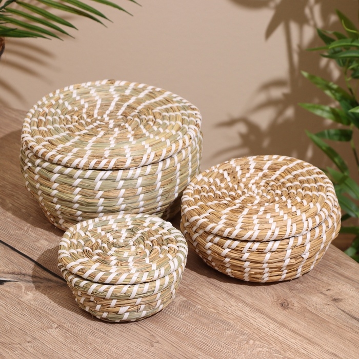 Набор плетёных корзинок, 3 шт. с крышкой 25х20х16 см