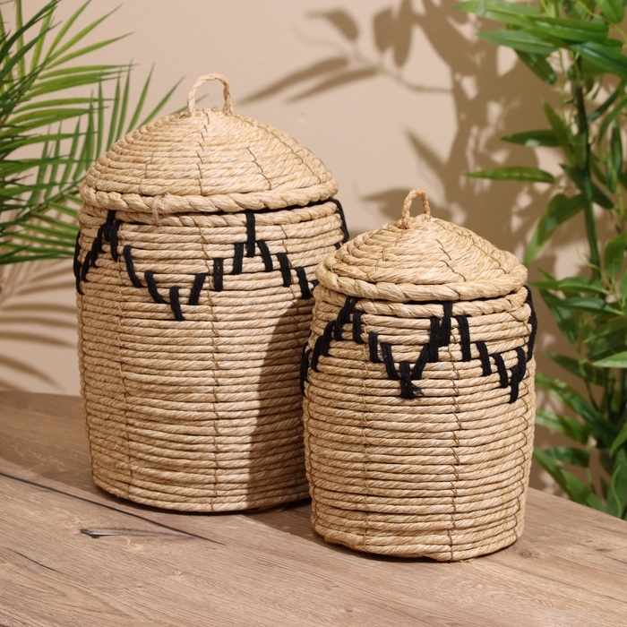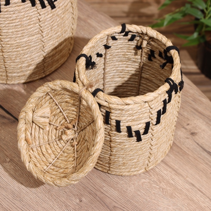 Набор плетёных корзин с крышкой, 27х24х24/22х18х18 см