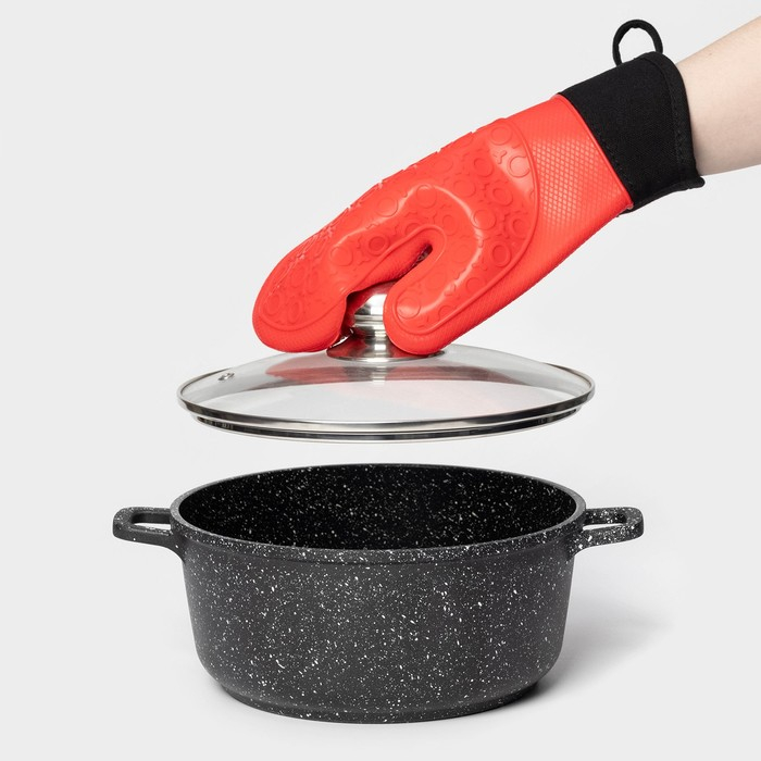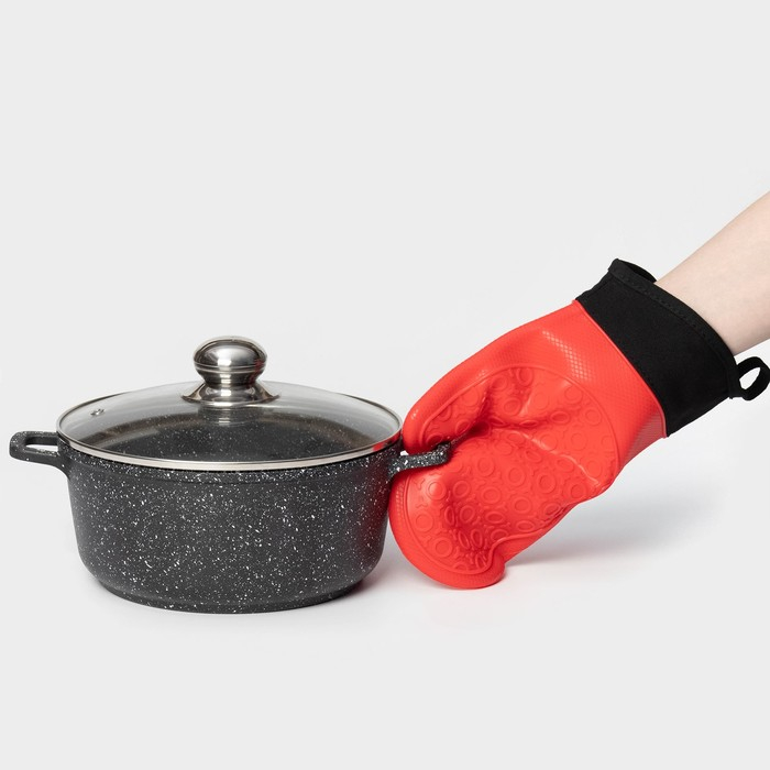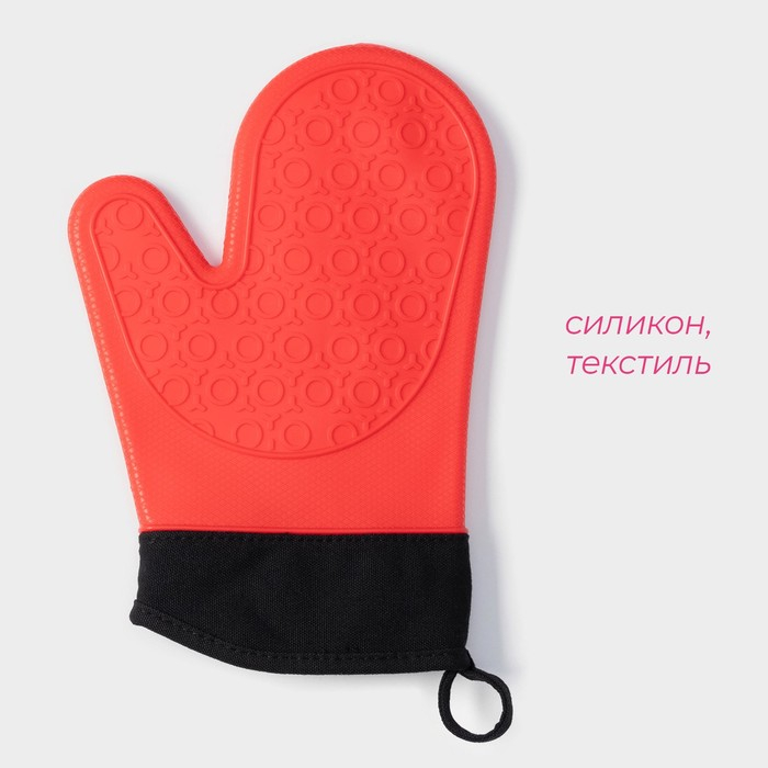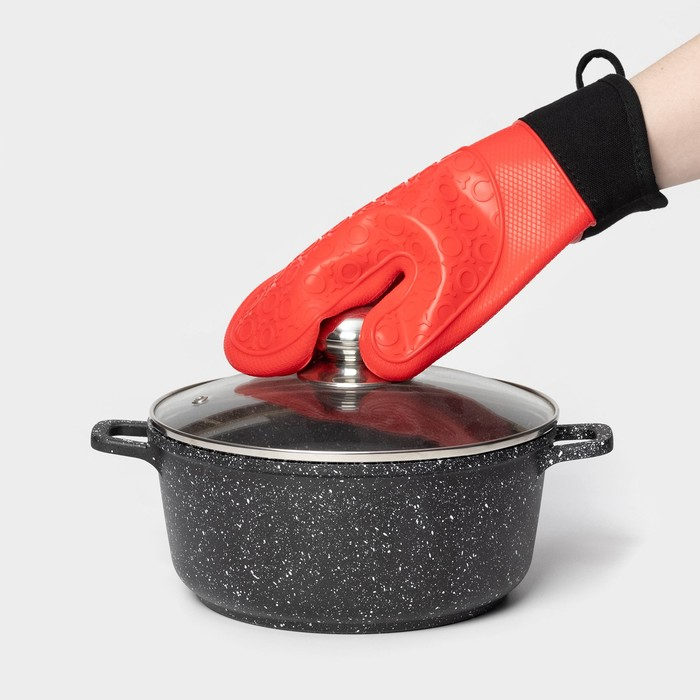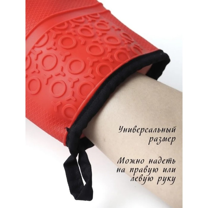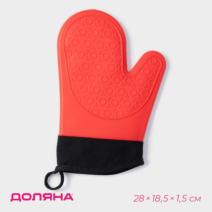 Рукавица для горячего Доляна «Профи», силикон, 28×18,5×1,5 см, с манжетой, цвет красный