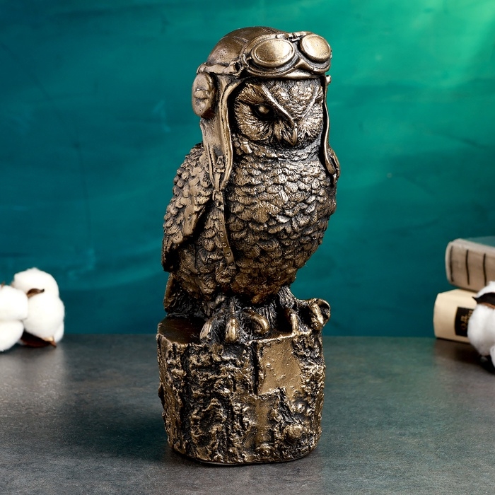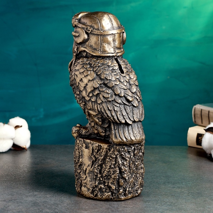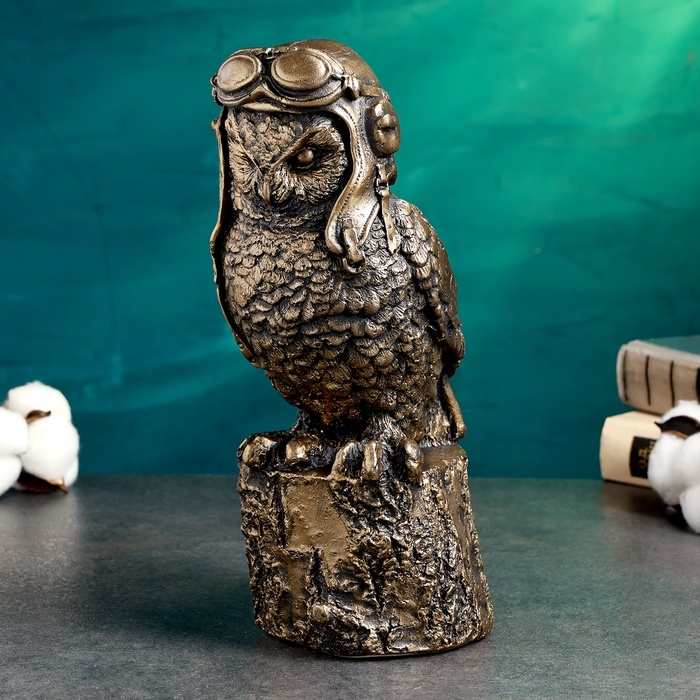 Копилка "Сова авиатор" 14х12х25см, бронза