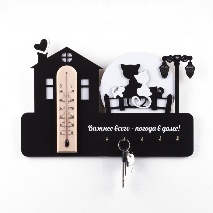 Ключница на стену "Важней всего - погода в доме", с термометром