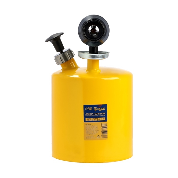 Лампа паяльная ТУНДРА, направленный факел пламени, расход <1.2 л/ч, АИ 92-95, объем 2 л