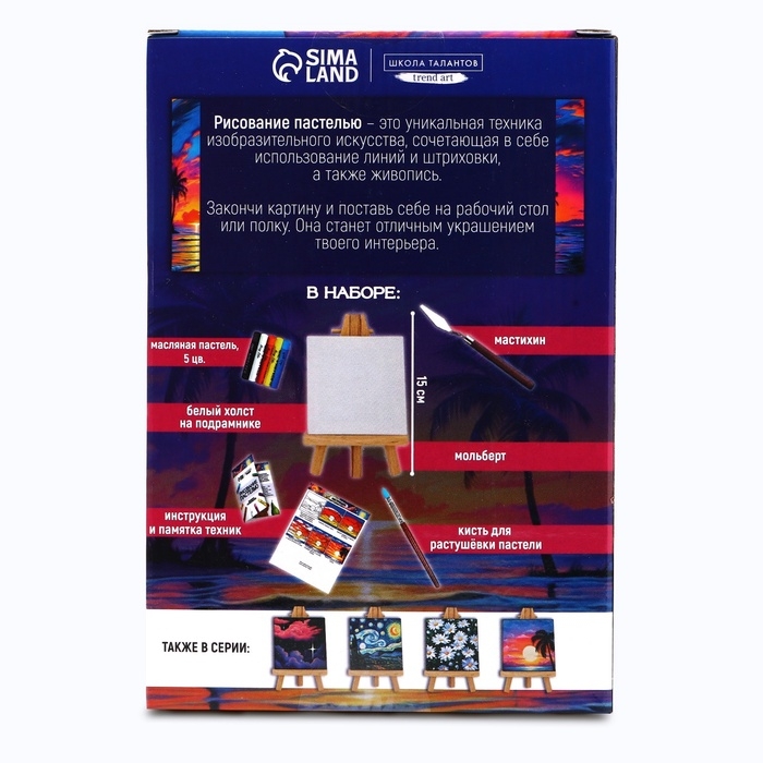 Рисование пастелью c холстом на подрамнике «Закат», набор для творчества