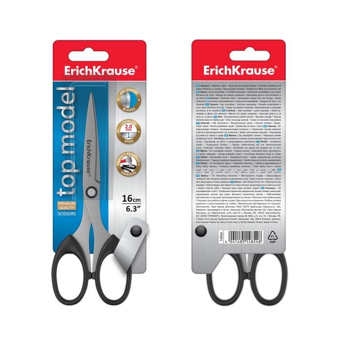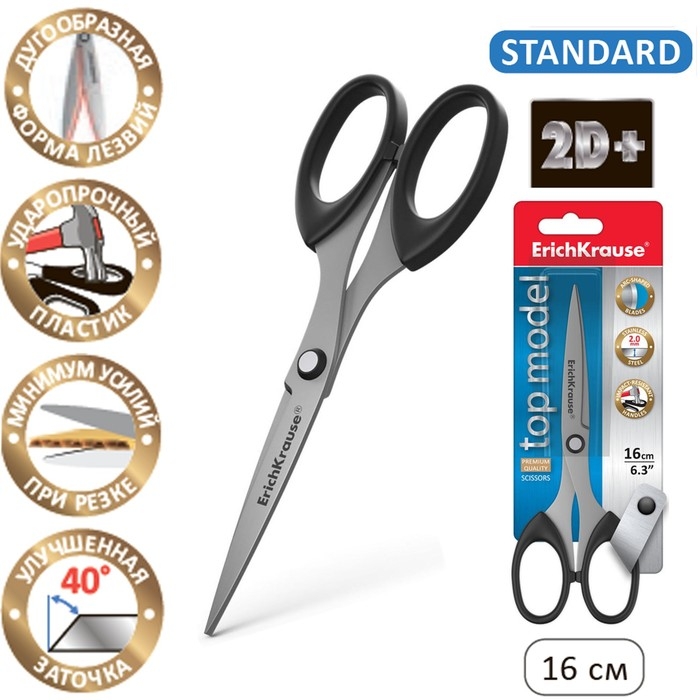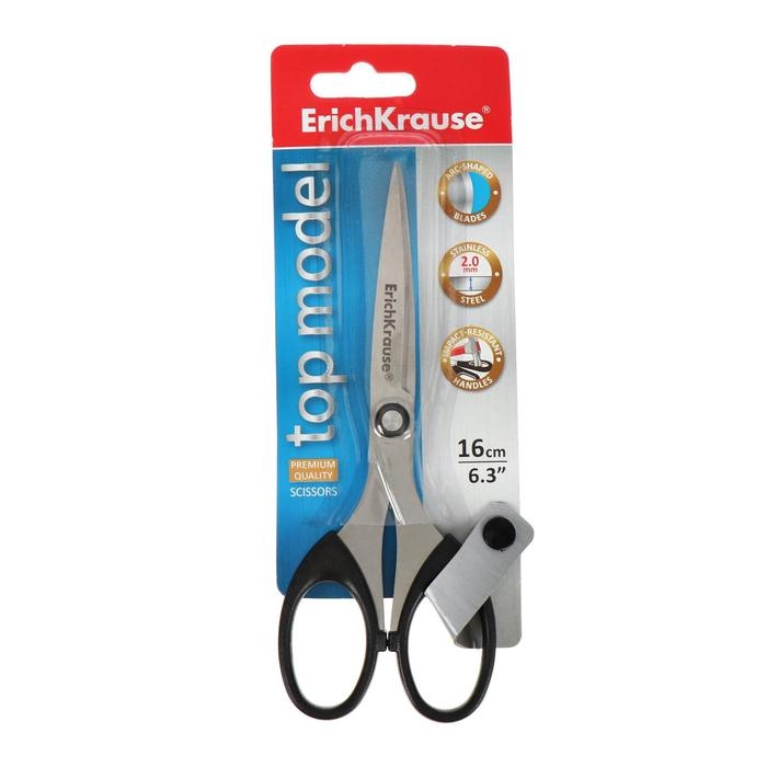 Ножницы ErichKrause Top Model, 16 см, с увеличенной толщиной лезвий из нержавеющей стали, чёрные
