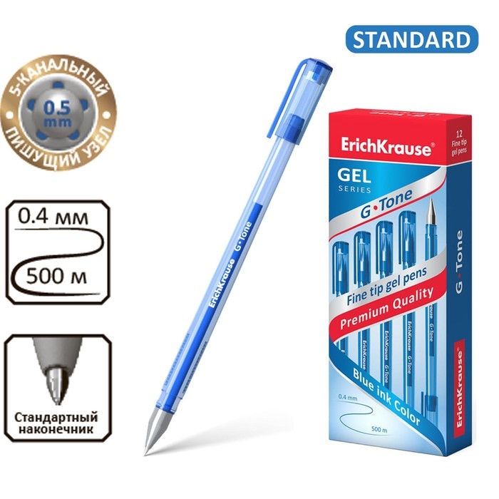 Ручка гелевая ErichKrause G-Tone, узел 0.5 мм, чернила синие, длина линии письма 500 метров