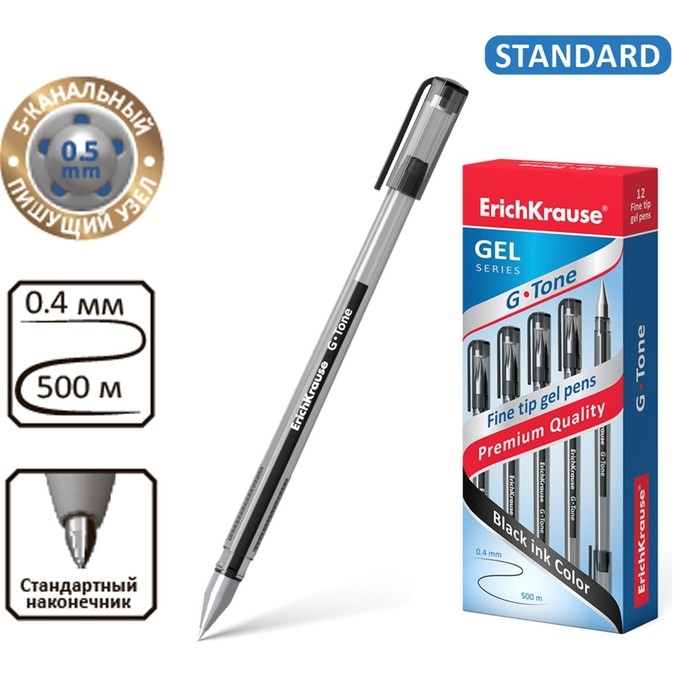 Ручка гелевая ErichKrause G-Tone, узел 0.5 мм, чернила чёрные, длина линии письма 500 метров