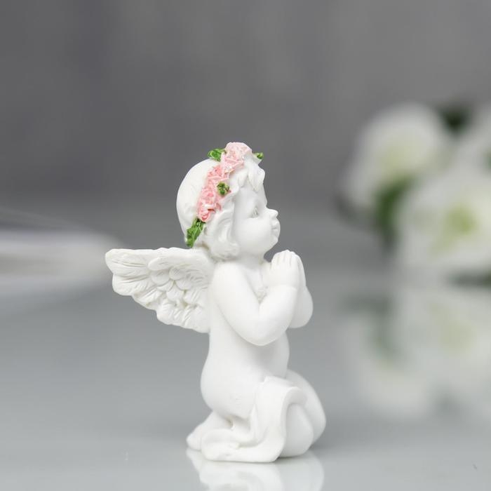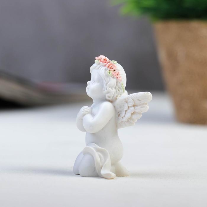 Сувенир полистоун "Ангел в венке из роз в молитве" МИКС 6х4х2,6 см