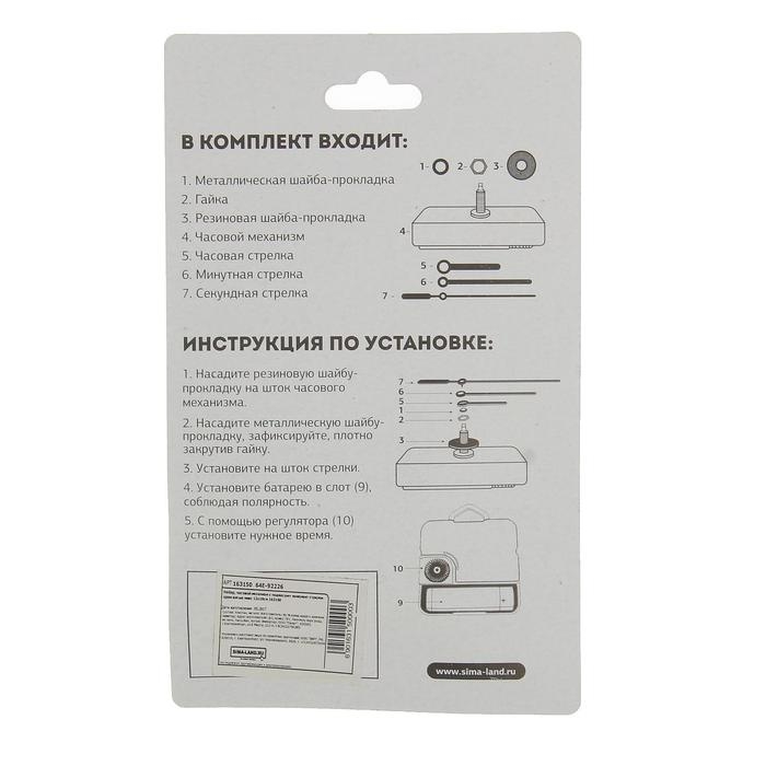 Часовой механизм со стрелками «Соломон-37», плавный ход, шток 16 мм, стрелки 60/89/99 мм