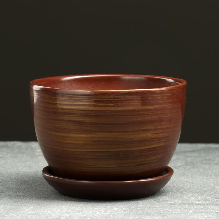 Горшок для цветов «Саванна», 750 мл, d=14 см, h=10 см, керамика, с поддоном, коричневый