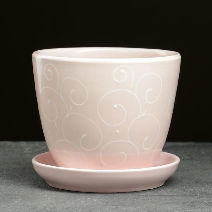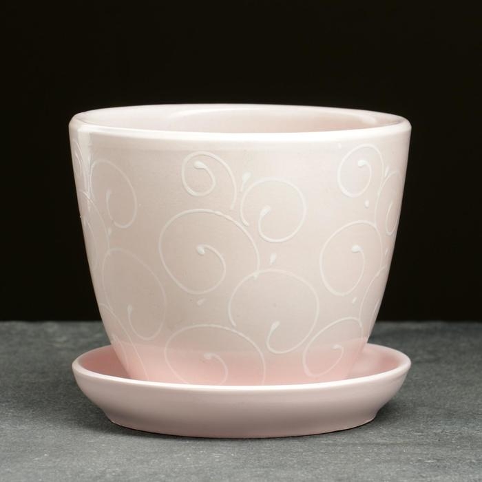 Горшок для цветов «Витраж», 1 л, d=15 см, h=13 см, керамический, с поддоном, бежевый