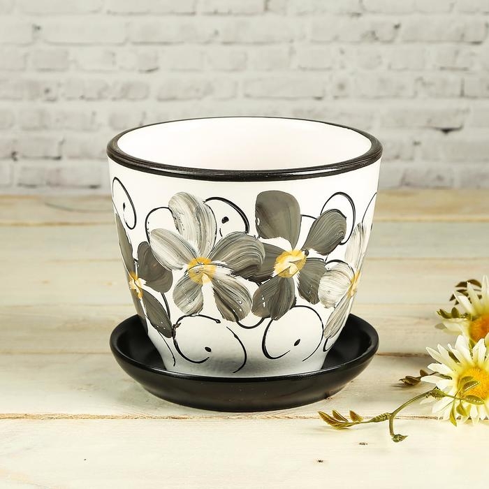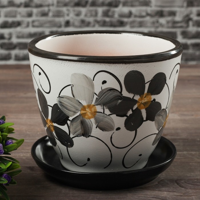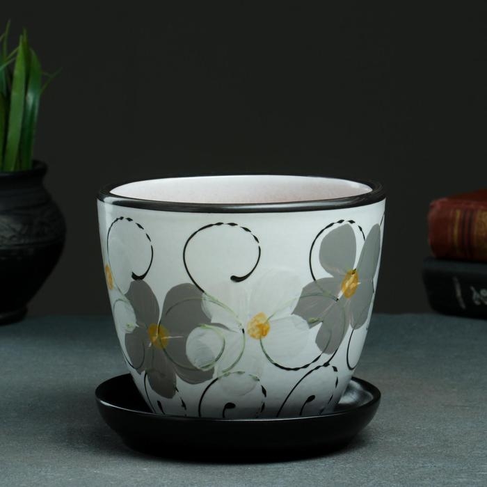 Горшок для цветов «Фиалка», 1 л, d=15 см, h=13 см, керамический, с поддоном