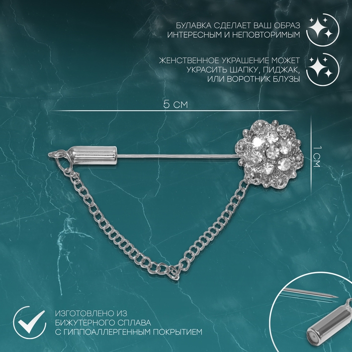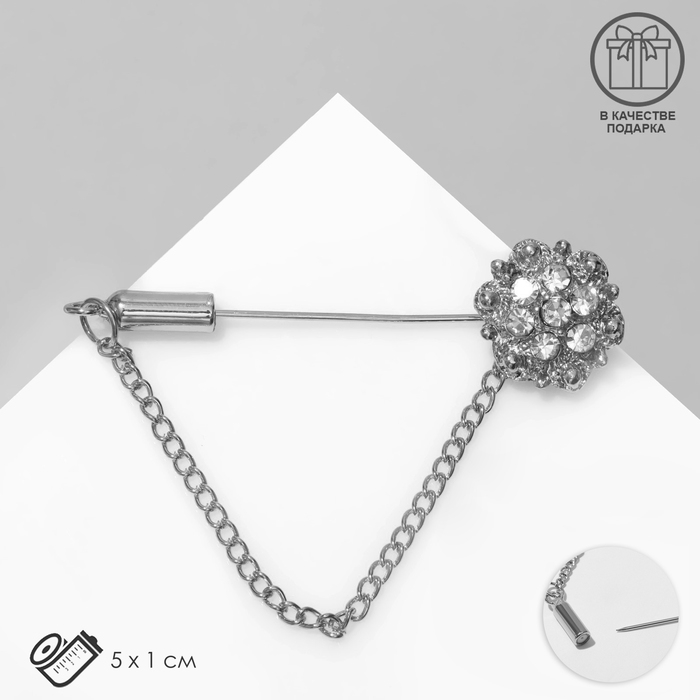 Булавка «Вечеринка» стразы, 7 см, цвет серебро