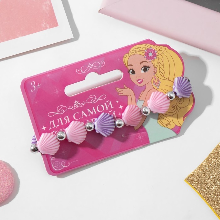 Браслет детский «Выбражулька» ракушка, цвет розово-фиолетовый
